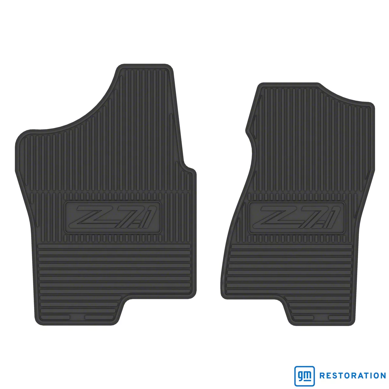 Construction and Appearance. Crafted from vintage-style rubber, these mats feature a robust, textured surface with authentic General Motors licensed logos, including the Z71 emblem. The black finish complements the truck's interior while delivering a classic, vintage look that aligns with the vehicle's design.