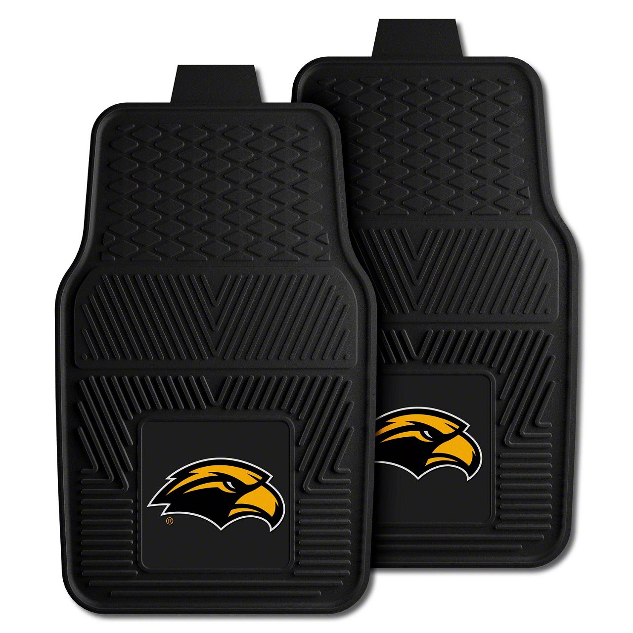 Vinyl Front Floor Mats with University of Southern Mississippi Logo; Black (Universal; Some Adaptation May Be Required)