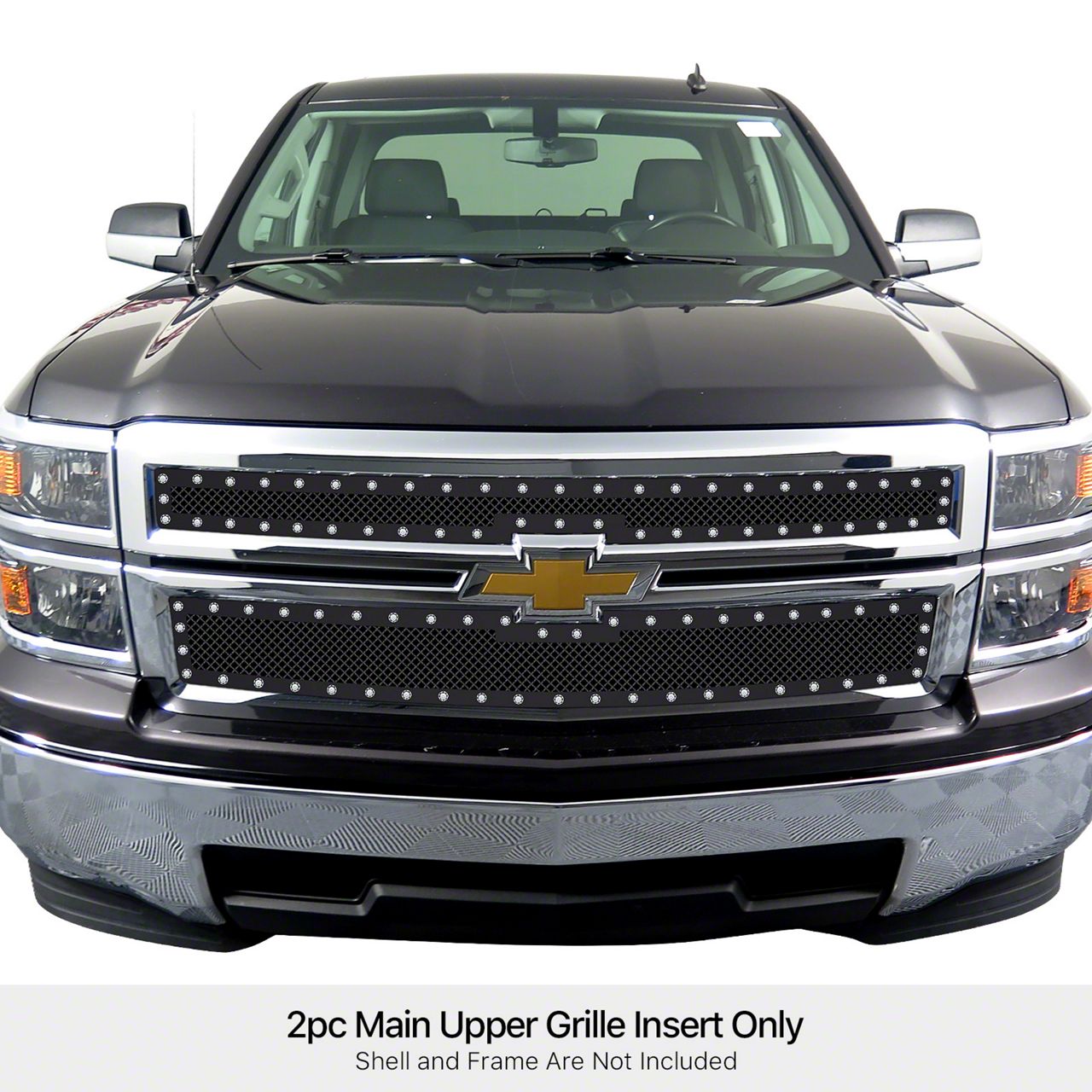 Application. The Wire Mesh Rivet Style Upper Replacement Grille; Black fits 2014-2015 Silverado 1500 models.