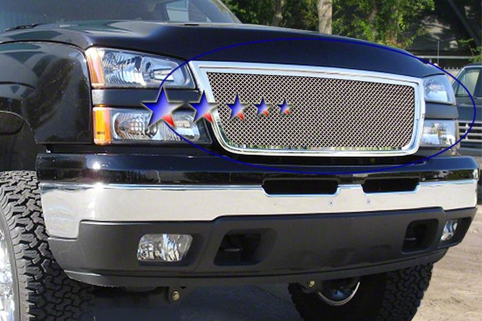 Application. The Wire Mesh Upper Replacement Grille; Polished fits 2006 Silverado 1500 models.