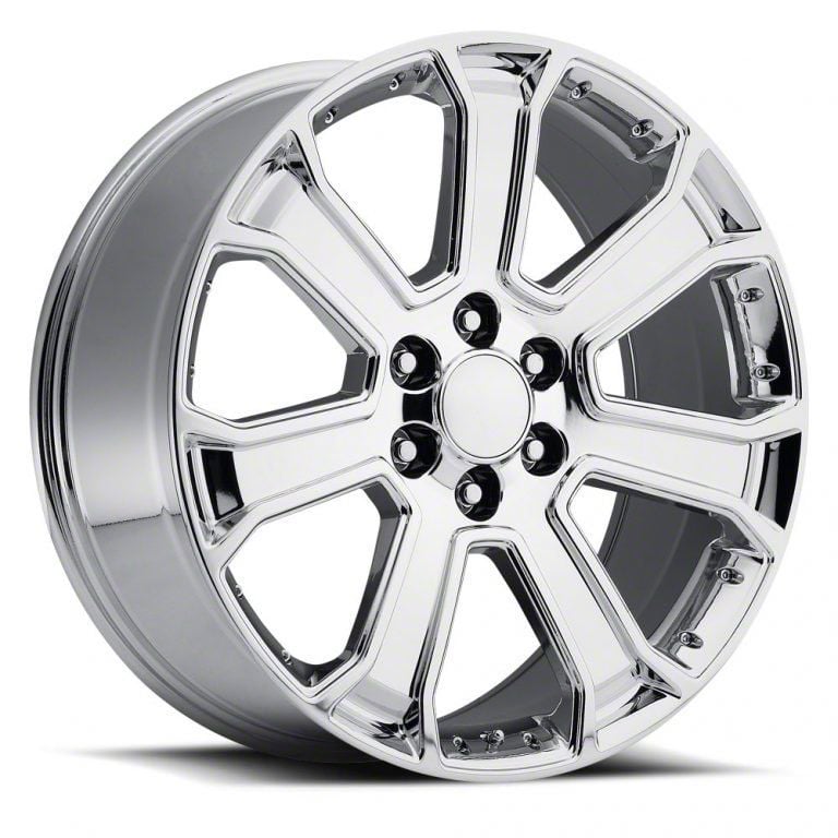 Application. This Yukon Denali Replica Chrome 6-Lug Wheel; 22x9; 31mm Offset, with a backspace of 6.22 Inch, 158mm and bolt pattern of 6 x 139.7mm (6 x 5.5-Inch), ensures proper alignment and stability. It's designed to fit the 2019-2026 Silverado 1500 models, enhancing both the look and the overall driving experience. Sold individually.