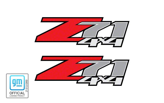Bed Side Decals. Update the exterior styling of your 2007-2013 Chevrolet Silverado 1500 with a pair of officially licensed Z71 4x4 Decals that feature a Red, Black and Gray design. These officially licensed decals are printed on the highest quality vinyl material using the exact same fonts and logos that are used by Chevrolet when creating their very own products.