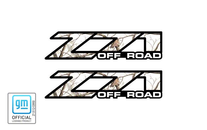 Bed Side Decals. Update the exterior styling of your 1999-2006 Chevrolet Silverado 1500 with a pair of officially licensed Z71 Off Road Decals that feature a Camo Realtree APS Snow design. These officially licensed decals are printed on the highest quality vinyl material using the exact same fonts and logos that are used by Chevrolet when creating their very own products.