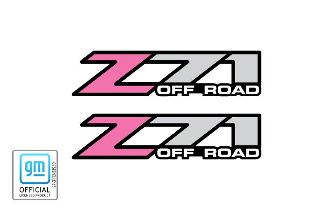 Bed Side Decals. Update the exterior styling of your 1999-2006 Chevrolet Silverado 1500 with a pair of officially licensed Z71 Off Road Decals that feature a Pink design. These officially licensed decals are printed on the highest quality vinyl material using the exact same fonts and logos that are used by Chevrolet when creating their very own products.