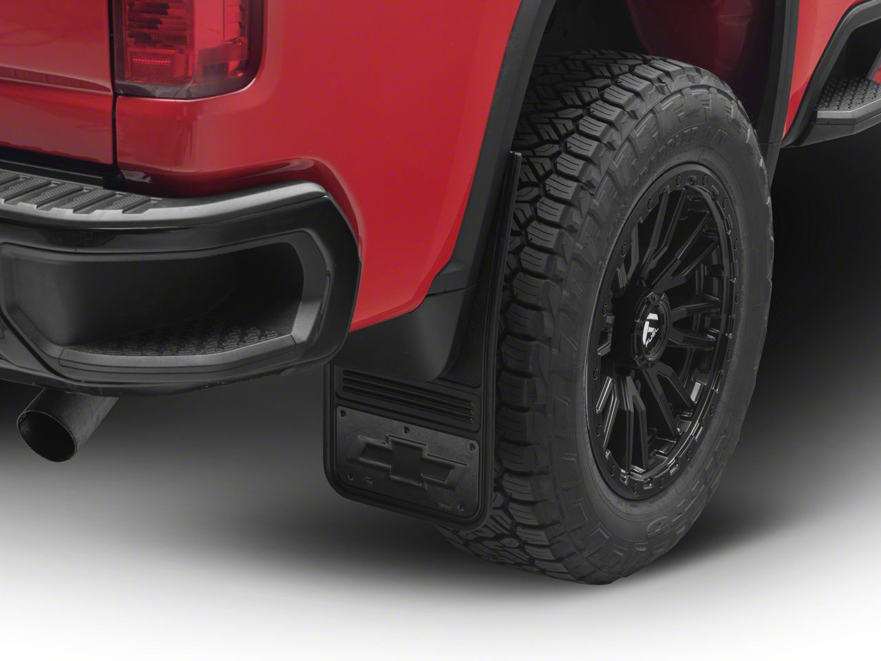 Installation. Putting these 12-Inch x 23-Inch Mud Flaps with Bowtie Logo on your vehicle is easy and requires no drilling.