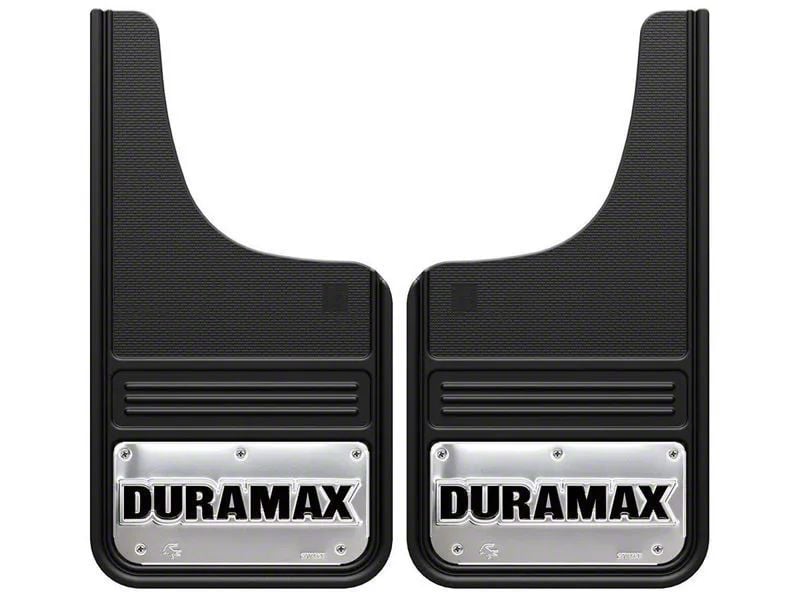 Ultimate Protection, Signature Style. Enhance the functionality and appearance of your vehicle with these 12-Inch x 23-Inch Mud Flaps with Duramax Logo. Designed to fit either the front or the rear wheels, these mud flaps offer superior protection against road debris, mud, and water splashes, all while showcasing your pride in the Duramax brand. Show off your brand loyalty with the prominently displayed Duramax logo, adding a custom look to your vehicle.