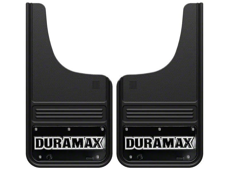 Application. These 12-Inch x 23-Inch Mud Flaps with a Duramax Logo have universal fitment.