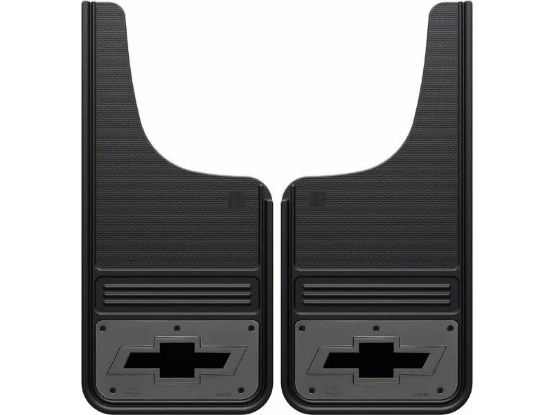 Distinctive Style. Elevate your vehicle's aesthetics and functionality with the premium 12-Inch x 26-Inch Mud Flaps with Black Bowtie Logo; Front or Rear. These mud flaps are the perfect blend of style and protection for your vehicle, suitable for both front and rear applications. Adorned with the iconic Black Bowtie Logo, these mud flaps make a bold statement. The logo adds a touch of sophistication and brand pride, making your vehicle stand out in a crowd.