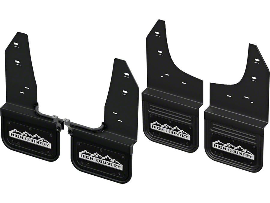 1.50-Inch Offset No-Drill Mud Flaps with High Country Logo; Front and Rear (20-26 Silverado 2500 HD, Excluding ZR2)Find parts that fit my vehicle