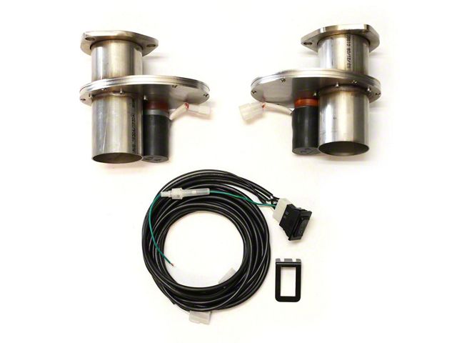 Efficient Exhaust Control. The 2-1/2-Inch Electric Cut-Out; Pair is designed to give you full control over your vehicle's exhaust system. This product allows you to uncork your exhaust right from your dash, making it incredibly convenient for drivers who need to switch between a muffled and unmuffled exhaust quickly. This makes it ideal for racetracks that do not require mufflers, providing an instant performance boost and an aggressive exhaust note when you need it most.