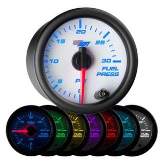 30 PSI Fuel Pressure Gauge; White 7 Color (Universal; Some Adaptation May Be Required)