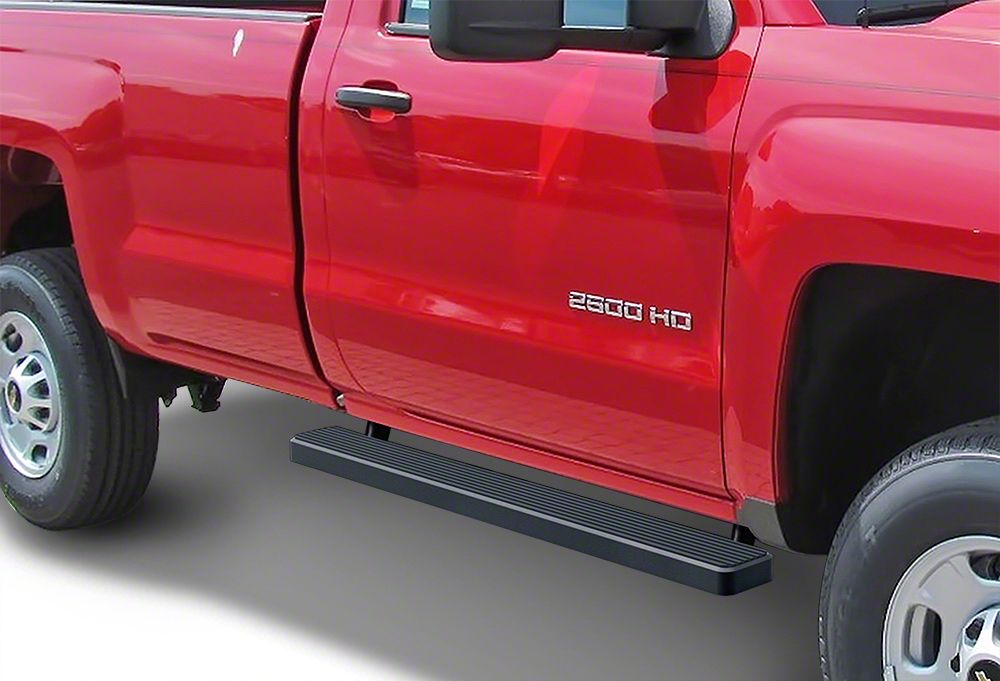 Style and Function. Upgrade the appearance of your Chevrolet Silverado 2500 HD Regular Cab with a set of 4-Inch iStep Running Boards. These great looking iStep Running Boards furnish a convenient 4-Inch wide step for easy entry in and out of your 2500 Silverado while giving it a clean, modern appearance. As an added bonus, these Running Boards will help to protect your vehicle's body and paint from stones and road debris that get kicked up while driving.