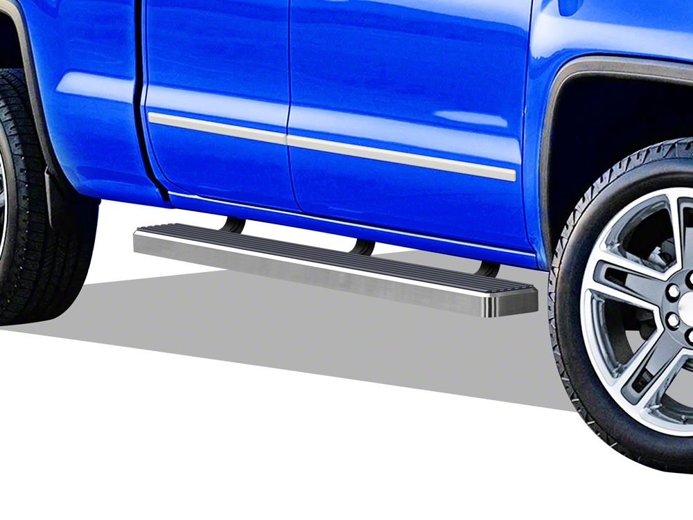 Style and Function. Upgrade the appearance of your Chevrolet Silverado 2500 HD Extended/Double Cab with a set of 4-Inch iStep Running Boards. These great looking iStep Running Boards furnish a convenient 4-Inch wide step for easy entry in and out of your 2500 Silverado while giving it a clean, modern appearance. As an added bonus, these Running Boards will help to protect your vehicle's body and paint from stones and road debris that get kicked up while driving.