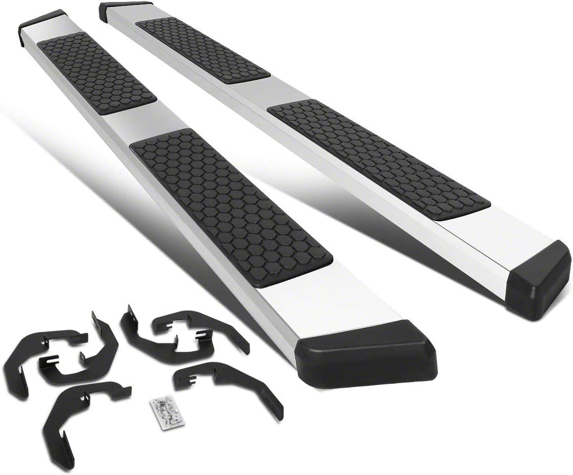 Slip-Resistant Pads. Installation is quick and easy with the drill-less installation bolts and included vehicle-specific mounting brackets. The running boards are also outfitted with honeycomb-patterned slip-resistant step pads for added safety. The 5-inch flat-shaped steps provide ample footing for getting in and out of your vehicle.