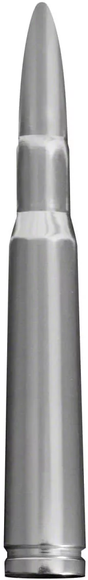 Bullet Style Antenna. Give your ride a hardcore look and sport this 50 Cal Bullet Antenna; 5-Inch; Brushed Aluminum into your hood, roof or wherever the mounting sport of your car is. On top of its stylish exterior, this 5-inch Antenna will provide you with quality reception so you can tune in to news, music, or your favorite broadcast show, on the go.