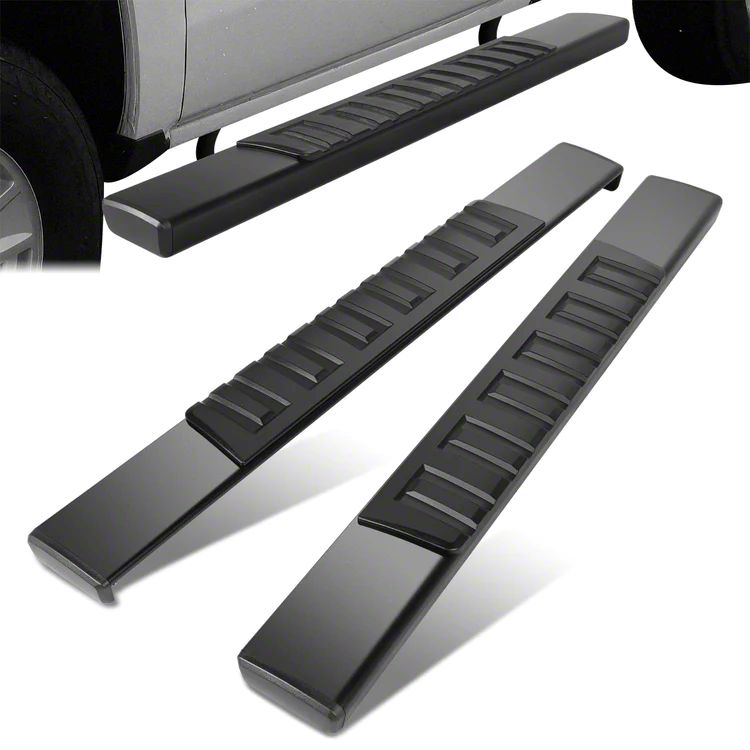 Upgrade Your Silverado's Accessibility. The 6-Inch Wide Flat Running Boards in Black are designed to enhance both the accessibility and appearance of your 6.0L Silverado 2500 HD Regular Cab. These running boards provide a flat, non-slip surface that ensures safe and easy entry and exit for all passengers. The black finish adds a stealthy, aggressive look to your 6.0L Silverado 2500 HD Regular Cab, complementing its rugged design.