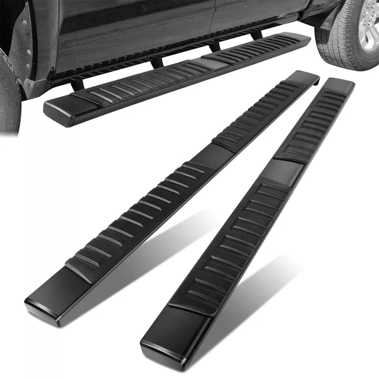 Enhanced Accessibility and Protection. Upgrade your truck with these 6-Inch Wide Flat Running Boards, designed for both functionality and style. Their wide, slip-resistant step surface ensures safe entry and exit, while the black powder-coated finish complements your vehicle’s rugged look. These running boards also provide extra protection against road debris, helping to keep your truck’s lower body panels in top condition.