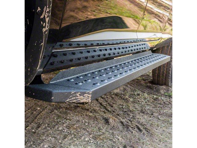 Description. Powerful, definitive and uncompromising as a mountain ridge, ARIES RidgeStep running boards are made for those who gets it done, day after day. With their solid, all-steel construction, non-skid treads and tough powder coat finish, RidgeStep running boards are made to finish the job. Installation of these running boards is easy and secure because they use the ARIES VersaTrac mounting system. The underside of each board is equipped with a channel that accepts a set of heavy-duty bracket inserts. The inserts move along the channel to fit your truck, and the mounting hardware provides a secure attachment. These running boards are designed to fit specific years of the Chevrolet Silverado 2500 HD or 3500 HD and GMC Sierra 2500 HD or 3500 HD (NOTE: This set of running boards includes vehicle-specific VersaTrac mounting brackets. See the application information to verify compatibility with your vehicle). ARIES RidgeStep running boards are not only made for easier installation, but they are also built to face the harsh elements of the commercial job. They feature high-strength, solid steel construction for a step that can keep up with those steel-toe boots, and they are completely without plastic parts, meaning they will not crack or fade over time. Their stamped, all-steel tread offers a 6-1/2" wide, non-skid surface that will never wear down no matter how many times you climb in and out of your truck. The end caps are also made from steel and are welded to contour to the body of your truck for a professional finish. RidgeStep running boards come with a unique E-coat and textured black powder coat finish to not only withstand rust but also to hide minor scratches and grime.