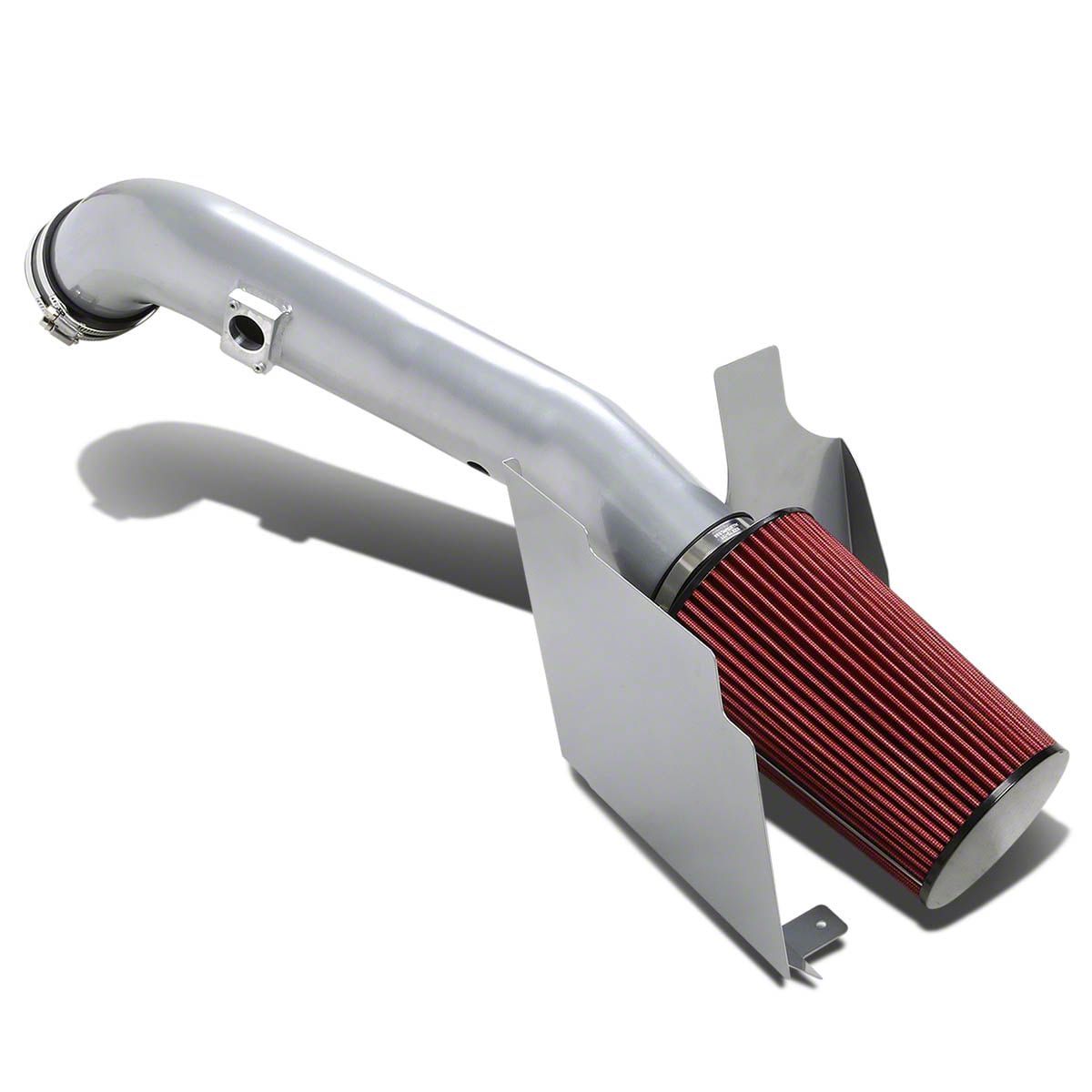 Aluminum Cold Air Intake with Red Filter and Heat Shield; Silver