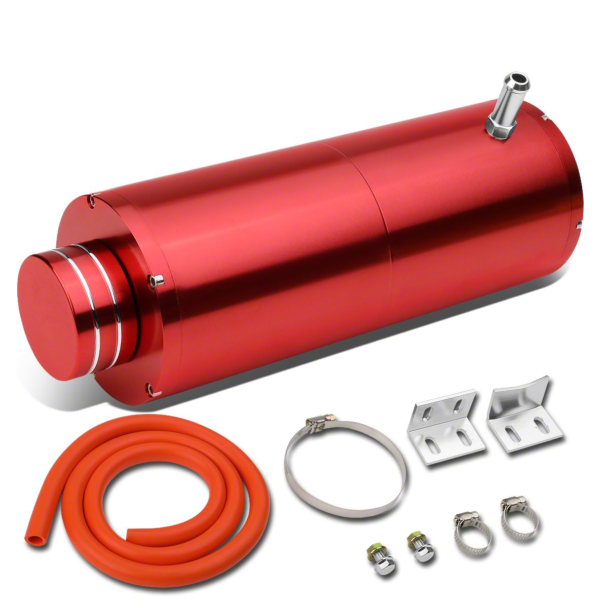 Construction and Appearance. Built from lightweight yet durable aluminum, this overflow tank stands up to extreme engine bay temperatures and pressures. It features a red finish that not only resists corrosion but also adds a bold custom aesthetic under the hood. The welded seams and high-quality fittings reflect premium construction standards for long-lasting performance.