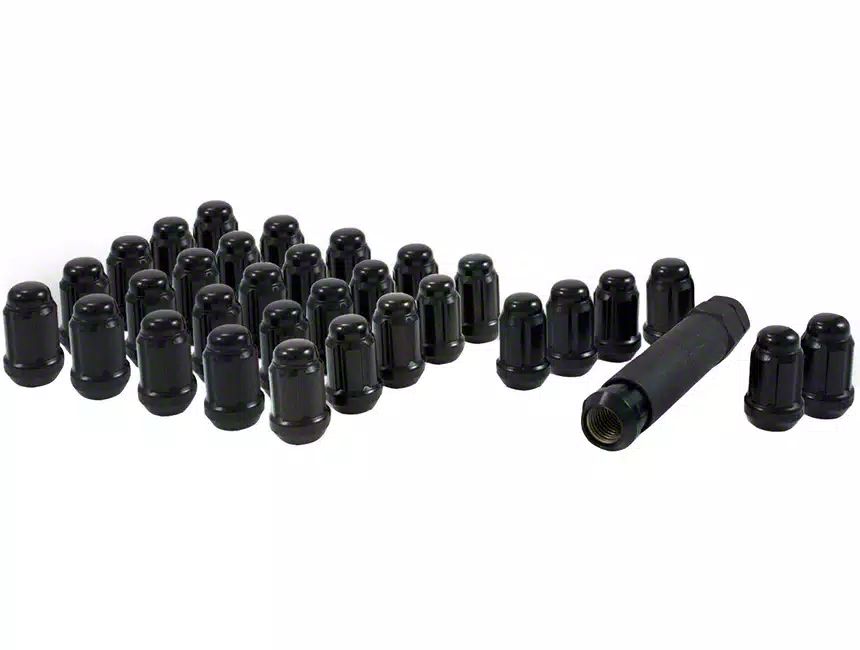 High-Quality Structure. Upgrade your vehicle's lug nuts with this set of 32 Black Closed End Spline Lug Nuts. These lug nuts feature an M14 x 1.5 thread size, making them compatible with a variety of vehicle models. Crafted from durable stainless steel, they are built to withstand the toughest driving conditions and resist corrosion, ensuring long-lasting performance. The black powder-coated finish not only adds a sleek and stylish look to your wheels but also provides extra protection against rust and wear.