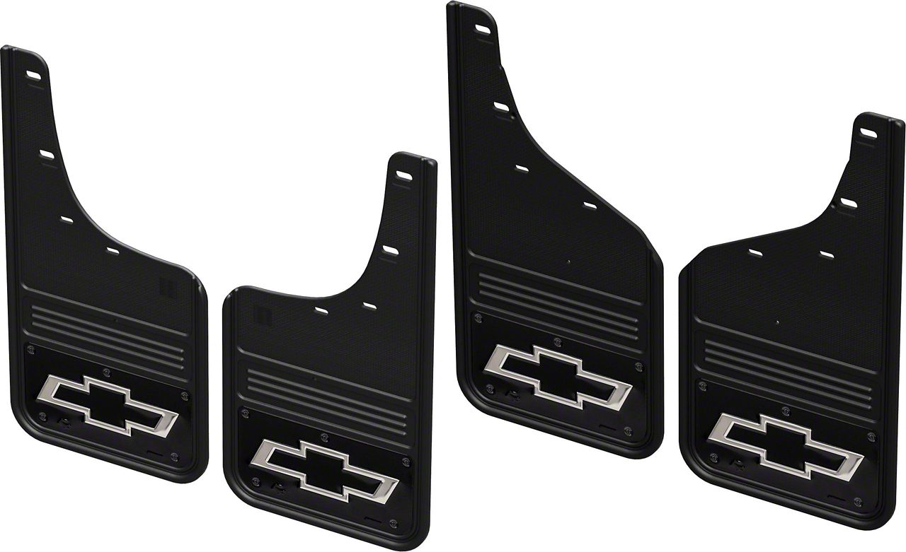 Black Wrap No-Drill Mud Flaps with Bowtie Logo; Front and Rear (20-26 Silverado 2500 HD, Excluding ZR2)Find parts that fit my vehicle