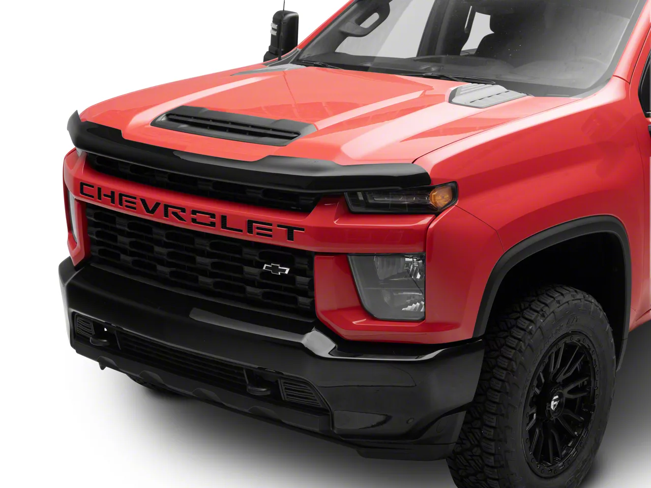 Application. The Bugflector II Hood Shield in Dark Smoke is compatible with all 2020-2026 Chevrolet Silverado 2500 HD models.