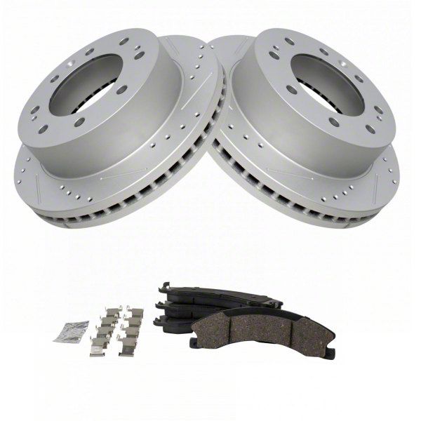 Enhanced Safety and Control. Level up your vehicle's braking performance with our Ceramic Performance Brake Rotor and Pad Kit designed for front placement. The kit includes cross-drilled and slotted brake rotors that effectively reduce brake fade while enhancing cooling, ensuring optimal stopping power even during demanding conditions. The true non-interference vane design further enhances airflow, contributing to improved heat dissipation.