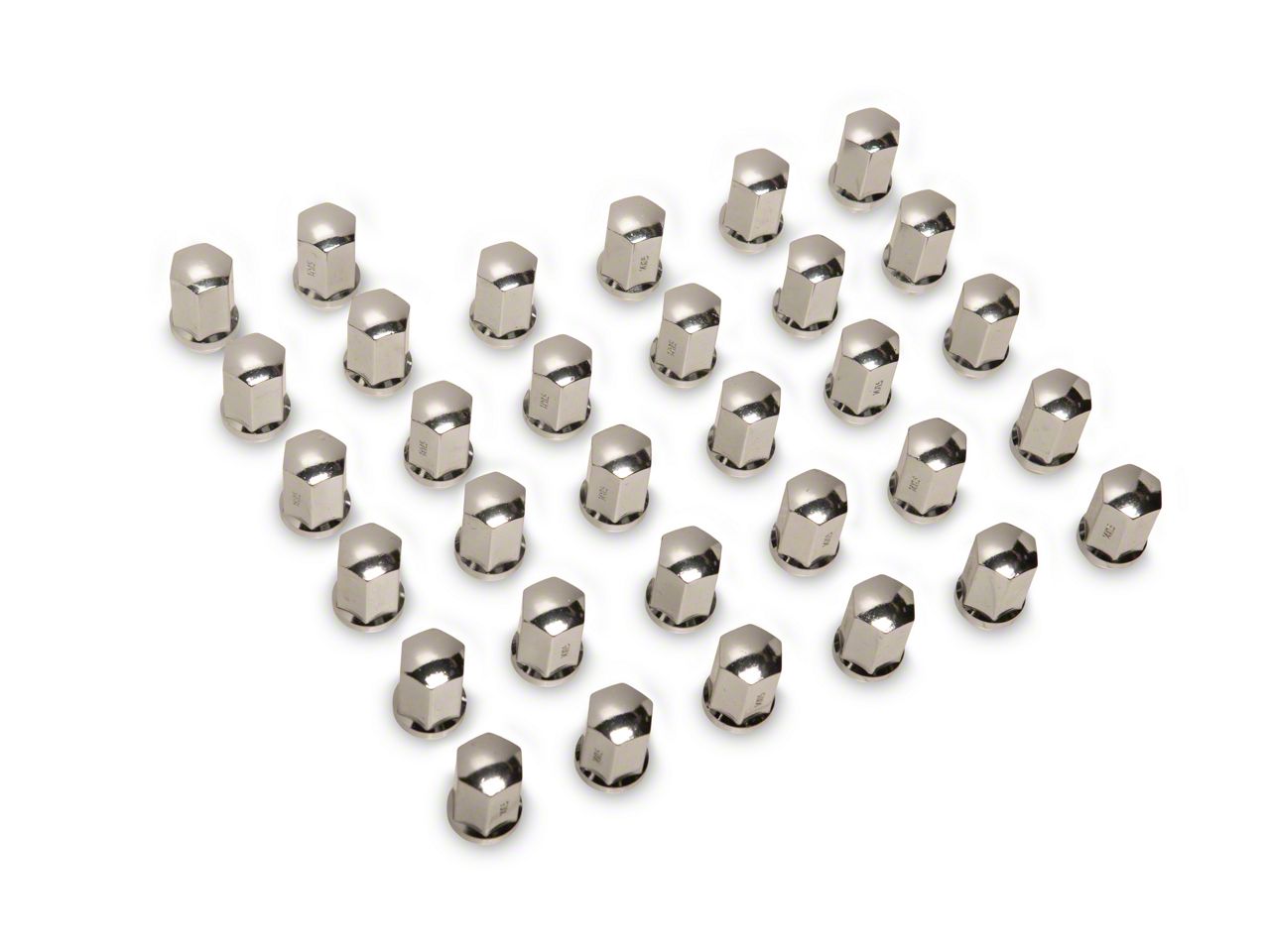 Enhanced Appeal and Performance. Upgrade your Silverado 2500 HD with the Chrome OEM Style Lug Nut Kit; 14mm x 1.5; Set of 32. This kit not only enhances the aesthetic appeal of your wheels but also improves the stability and security of your vehicle. Each lug nut in the 32-piece set is crafted from 1008 carbon steel and heat-treated for durability and strength. The striking chrome finish adds a touch of elegance to your Silverado, while its resistance to rust and corrosion ensures long-lasting shine and reliability.