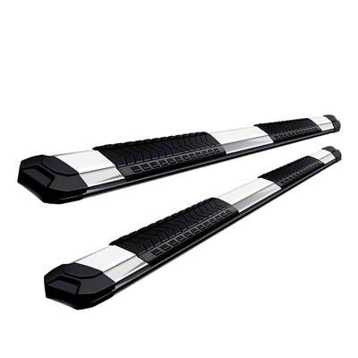 Construction and Appearance. These Summit Running Boards are made from triangulated steel tube for insane strength and are capable of supporting 400 pounds. There are 4-inch, ABS plastic, non-slip, UV-resistant pads to make the entry and exit process simpler. Rectangular end caps tie the room together, then the polished finish looks spectacular on your truck, no matter the color.