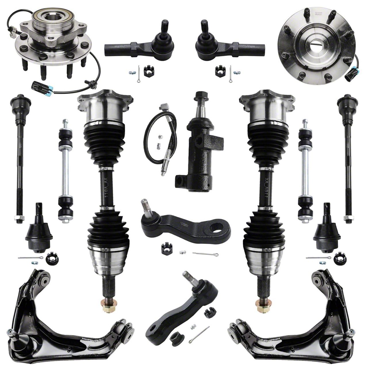 Kit Includes: (2) Front Hub + (2) Front Axle + (2) Front Upper Control Arm + (2) Lower Ball Joint + (2) Sway Bar Link + (2) Outer Tie Rod + (2) Inner Tie Rod + (1) Idler Arm + (1) Pitman Arm + (1) Idler Arm Bracket