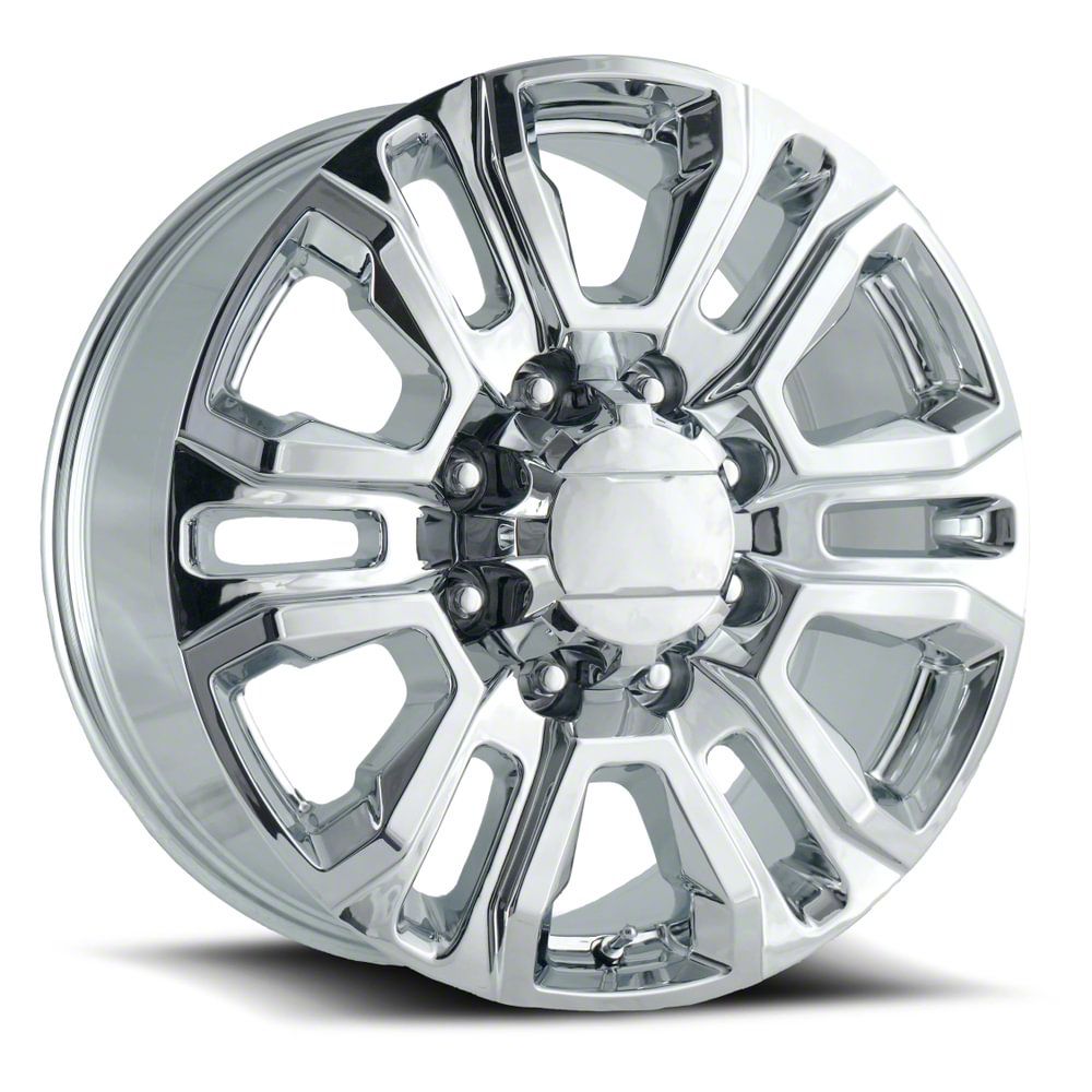 Application. This Denali 2500 Replica Chrome 8-Lug Wheel; 20x8.5; 47mm Offset, with a backspace of 6.6 Inch, 167.6mm; and bolt pattern of 8 x 180mm (8 x 7.08661-Inch), is designed to fit 2020–2026 Silverado 2500 HD models. Sold individually.
