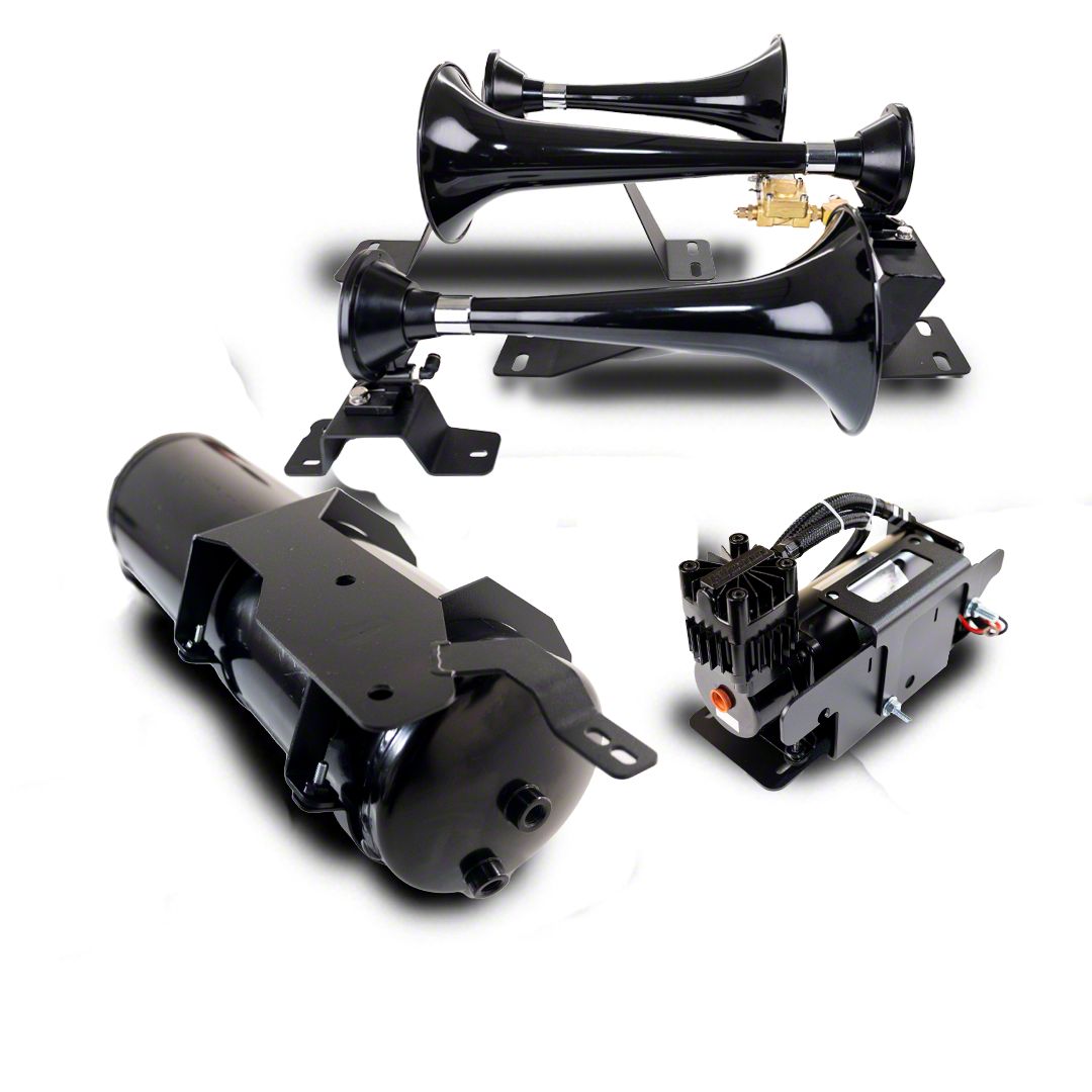 Thunderous Train Horn. Transform your Silverado 2500 HD into a commanding presence with the Direct Fit Onboard Air System and Model 230 Beast Triple Train Horn. It produces a powerful, deep tone that resonates with the intensity of a locomotive. It ensures your presence is heard, whether on the highway or at a job site. Crafted from high-quality materials, this onboard air system and horn setup is built to last. It withstands various weather conditions, ensuring consistent performance throughout its lifespan.