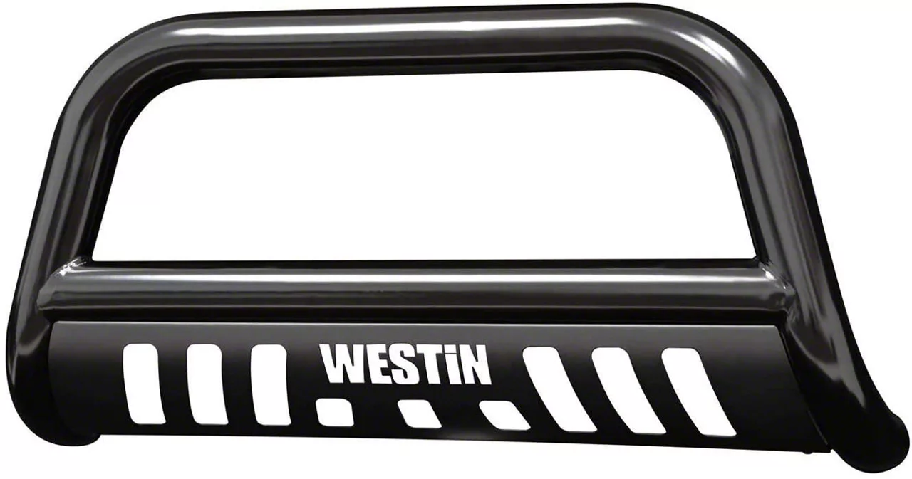 Front End Barrier. To reduce the damaging impacts of various road hazards, install this Black Store Brand E-Series Bull Bar. This bull bar serves as an effective barrier against road debris, thanks to its rigid and durable build. Furthermore, it comes with a textured black skid plate that helps protect your truck’s underside components every time you drive over rocky or bushy paths and other dangerous trails.