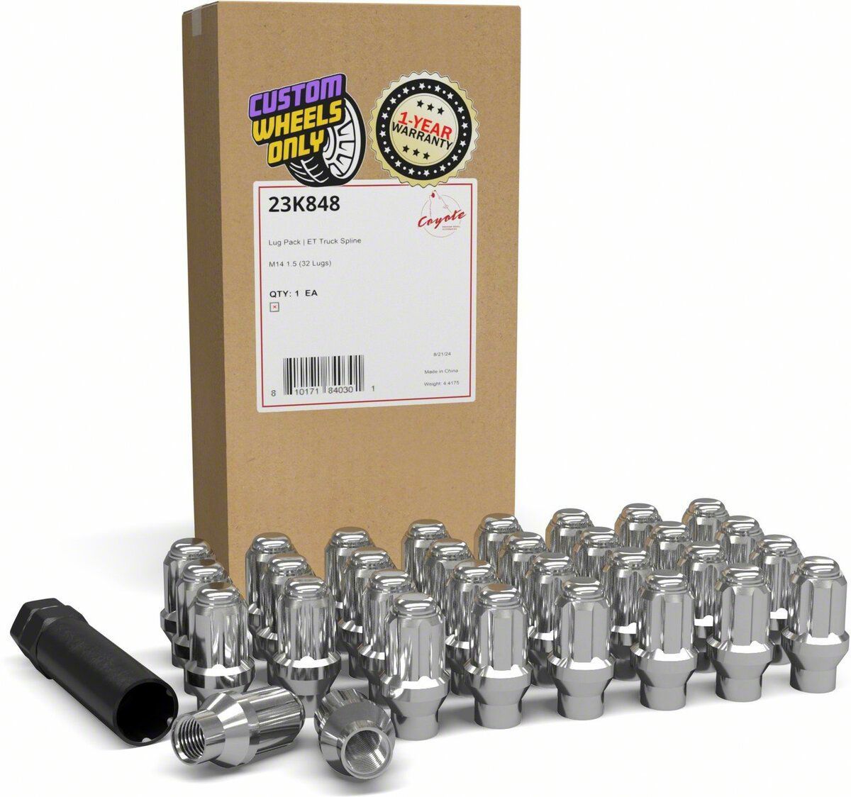 Amplified Clamping. The ET Bulge Acorn Chrome Lug Nut Kit's bulge acorn style design offers a larger seating surface, providing increased clamping force and improved wheel retention. This design also helps to prevent damage to the wheel's lug nut holes, ensuring a long-lasting and secure fit.