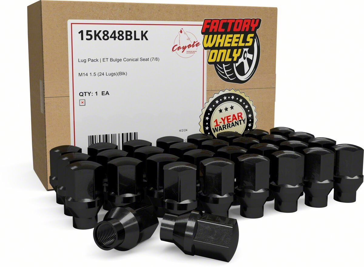 Construction and Appearance. Constructed from high-tensile steel, these lug nuts are built for strength and durability. They come with a sleek, glossy black finish that resists corrosion and complements a wide range of wheel styles. The 1-piece ET stock style offers both a clean aesthetic and a precise fitment, manufactured to match factory specifications.