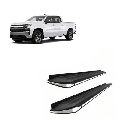 Sturdy Quality. Constructed from premium aluminum, the Exceed Running Boards offer excellent durability and lightweight performance. The black with chrome trim finish adds a sleek and sophisticated look to your vehicle's exterior.