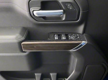 Interior Style in Small Places. When it comes to your Silverado 1500, don't forget the tiny places that could possibly add style dimensions. This Front Door Switch Accent Trim; Domed Matte Carbon Fiber is sold as a pair and the pieces fit on the switch panels of the front doors.