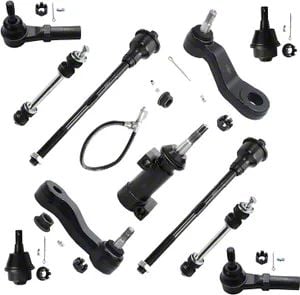 Complete Front Suspension Kit. The Front Lower Ball Joints with 3-Groove Pitman Arm, Idler Arm, Sway Bar Links and Tie Rods is a comprehensive suspension replacement package designed to restore handling precision and steering response. Ideal for drivers who demand both safety and performance, this assembly helps eliminate unwanted vibration, noise, and uneven tire wear.