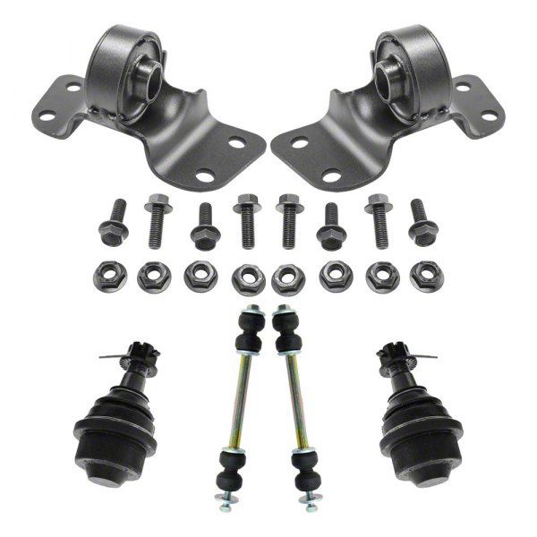 Comprehensive Suspension Kit. The Front Lower Ball Joints with Sway Bar Links and Torsion Bar Mounts provide essential components to restore and enhance front suspension performance. This kit replaces wear-prone parts to renew vehicle handling, stability, and ride quality, ensuring a safe and comfortable driving experience.