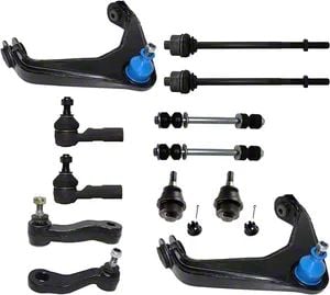 Comprehensive and Direct-Fit Replacement. The Front Upper Control Arms with Ball Joints, Idler Arm, 3-Groove Pitman Arm, Tie Rods, and Sway Bar Links are designed to replace worn-out components in your Chevrolet Silverado 2500 HD. This comprehensive kit significantly improves the handling and stability of your vehicle, ensuring a smoother and safer ride.