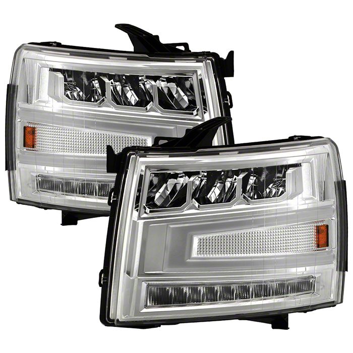 Enhanced Visibility & Style. The LED light bar adds a modern touch, providing superior illumination that outperforms traditional halogen bulbs. These headlights are engineered for durability, ensuring long-lasting performance and resistance to the elements. The chrome housing adds a touch of elegance to your Silverado, while the clear lens ensures maximum light output. Upgrade your Silverado 2500 HD with these Full LED Headlights and experience improved visibility, safety, and style on every journey.