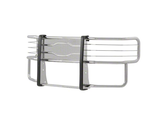 Solidly-Built Grille Guard. This grille guard is made of premium-quality stainless steel with a high-polished finish. It has a front end of 2-inch tubular steel that comes in one piece for guaranteed strength. The headlight guard has 3/8-inch wires with a durable wraparound ring design, while the steel uprights are frame-attached and offer long-lasting reliability.