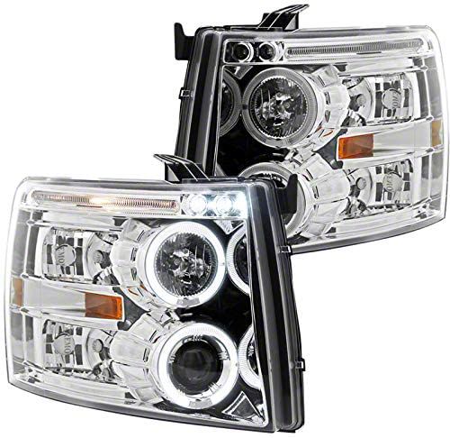 Application. The Dual Halo Projector Headlights in Chrome Housing and Clear Lens fit all 2007-2014 Chevrolet Silverado 2500 HD models.