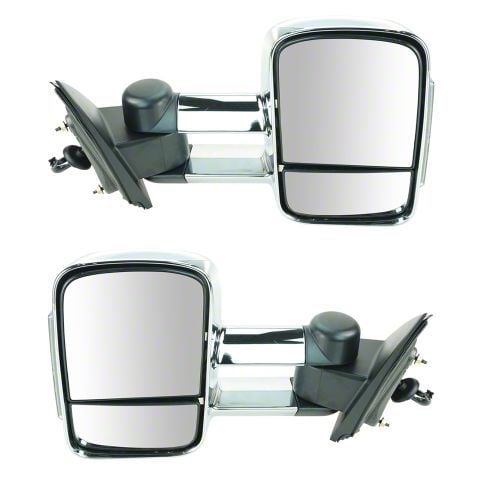 Safe. These Heated Manual Towing Mirrors greatly increase safety when towing by giving a clearer view of the vehicle's sides and back. They lessen the chance of accidents by assisting the driver in being more aware of their surroundings.