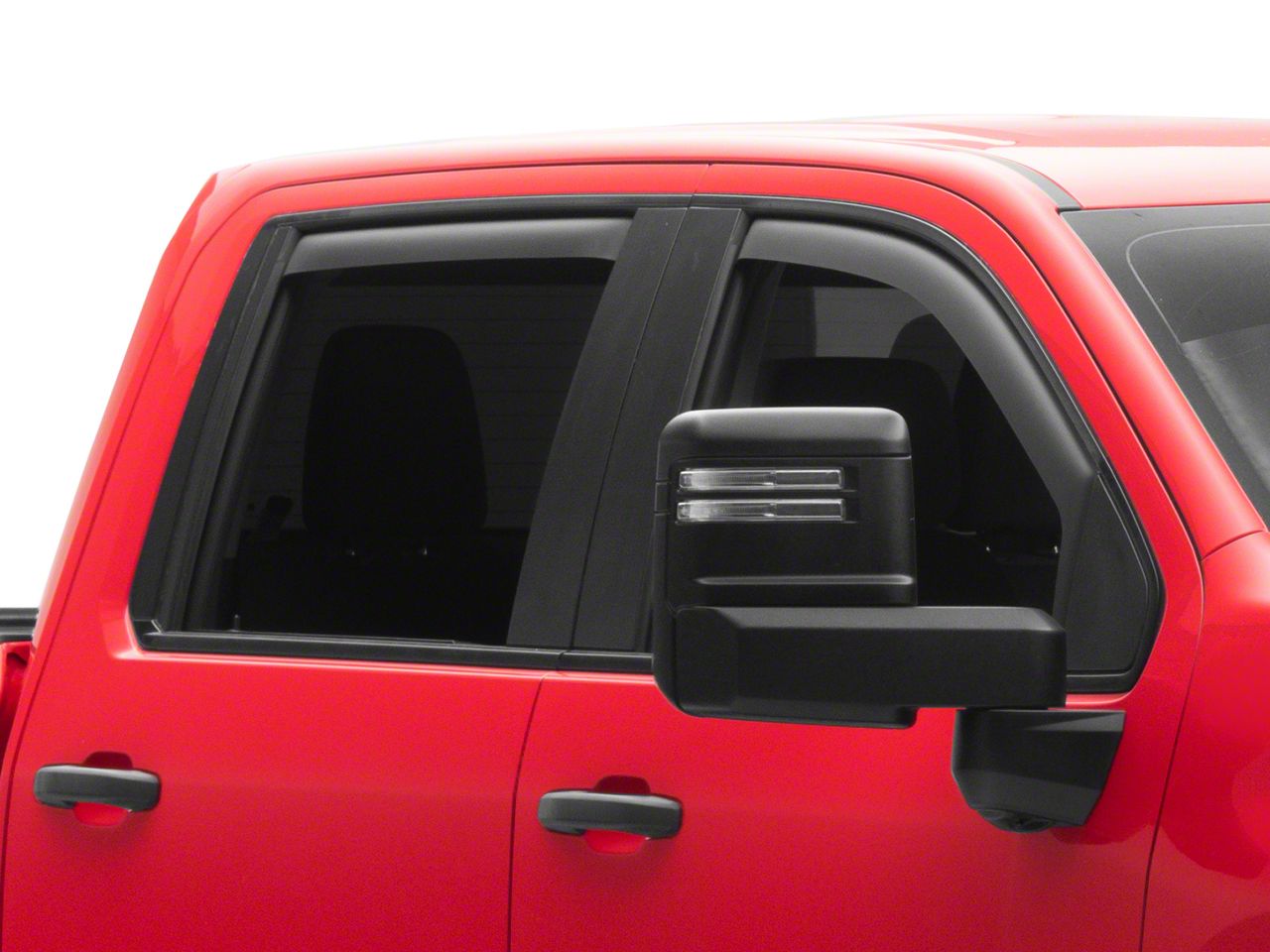 Application. The EGR In-Channel Window Visors; Front and Rear; Matte Black fits all 2020-2026 Chevrolet Silverado 2500 HD Crew Cab models.