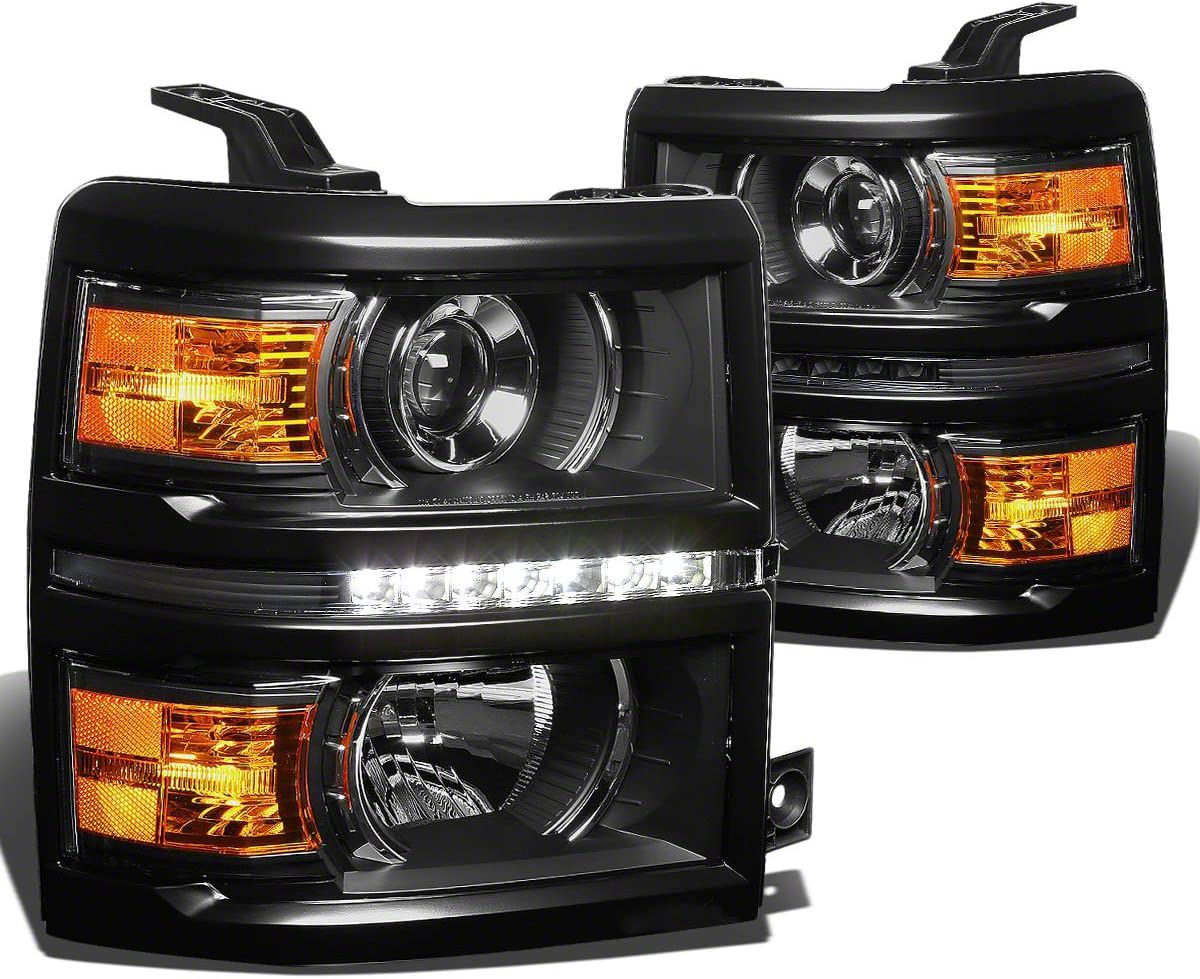 Application. This LED DRL Projector Headlights with Black Housing and Clear Lens fits all 2015 Silverado 2500 HD models.