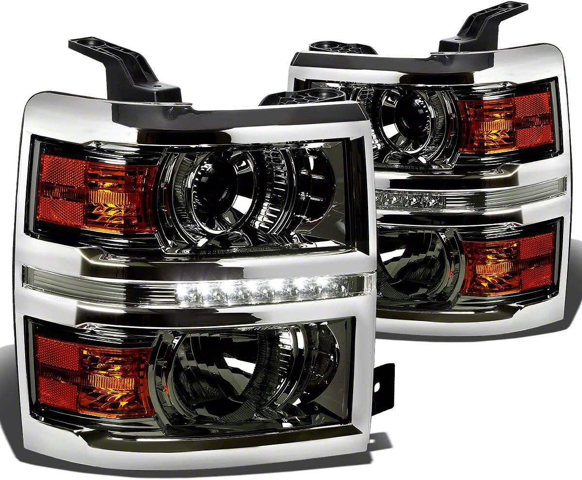 Application. The LED DRL Projector Headlights; Chrome Housing; Smoked Lens fit 2015 Chevrolet Silverado 2500 HD Models. Reuses stock bulbs - not included.