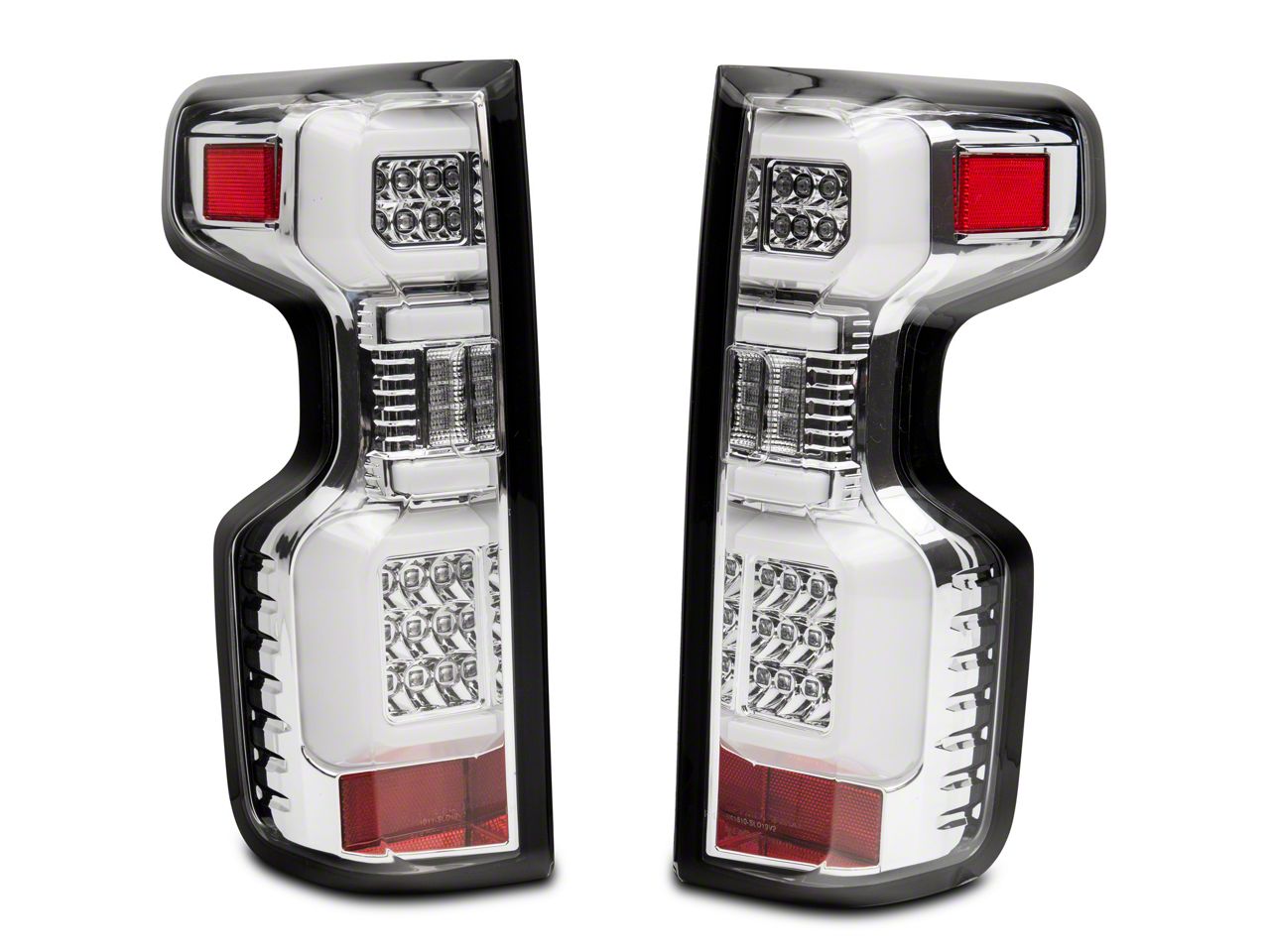 Modern Styling. These chrome LED Tail Lights will add an updated modern appearance to your Chevrolet Silverado. Featuring a uniquely shaped white running light bar that illuminates red, these LED Tail Lights will make an impactful statement. Whether your Silverado is your daily driver, a dedicated work truck or your weekend toy, these LED Tail Lights will be sure to set your Chevrolet apart from all the rest.