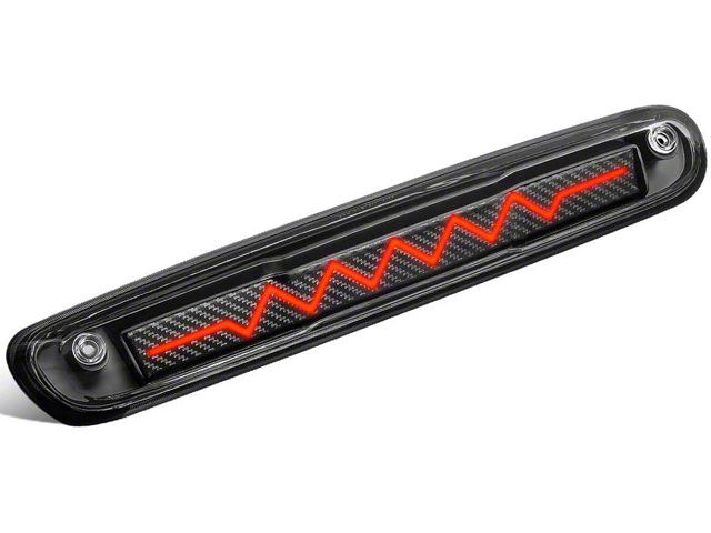 Stylish. Made for the Chevrolet Silverado 2500 HD, this LED Third Brake Light comes in stylish black carbon fiber housing with a clear lens and has a sequential heartbeat design for its red LEDs. It is a 2-stage design with a chasing light pattern and a solid brake light but does not have a cargo light function.